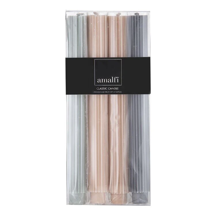 Amalfi Ribbed Dinner Candles Set Of 4 Blue/White/Grey/Taupe