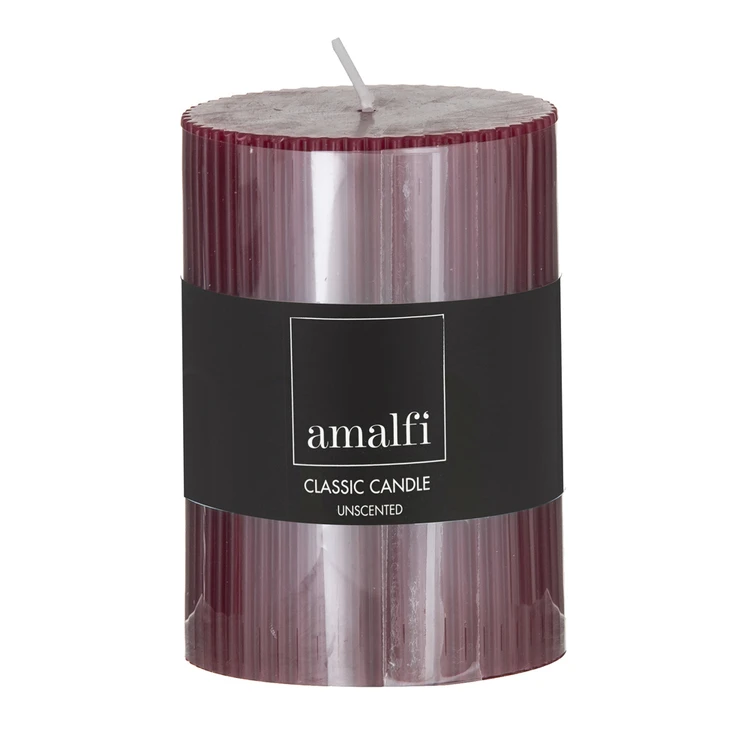 Amalfi Ribbed Unscented Pillar Candle Burgandy