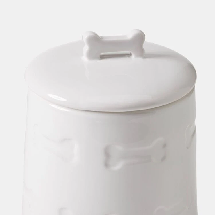 Keep your pet’s treats stored in this stylish Chyka Love Otto Treat Jar. The lid helps keep your pup’s treats fresher for longer, ensuring that your dog is always taken care of. The jar features a classic embossed bone design all around and on top of the lid and is made from a premium porcelain material that is both durable and easy to clean.