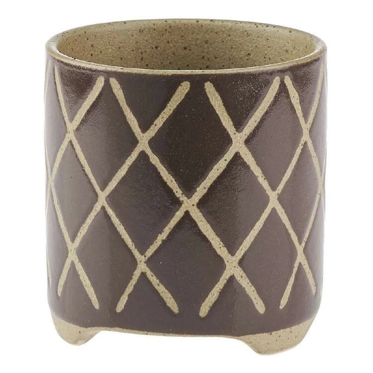 Breathe some style into any space and highlight your favourite indoor plants with the Linen House 12cm Planter Pot Estrada Coffee. This stoneware planter in coffee enjoys a geometric pattern throughout for texture, giving it a point of difference. Mix and match with the other Estrada pots in various sizes and hues to create your own cute little garden at home.