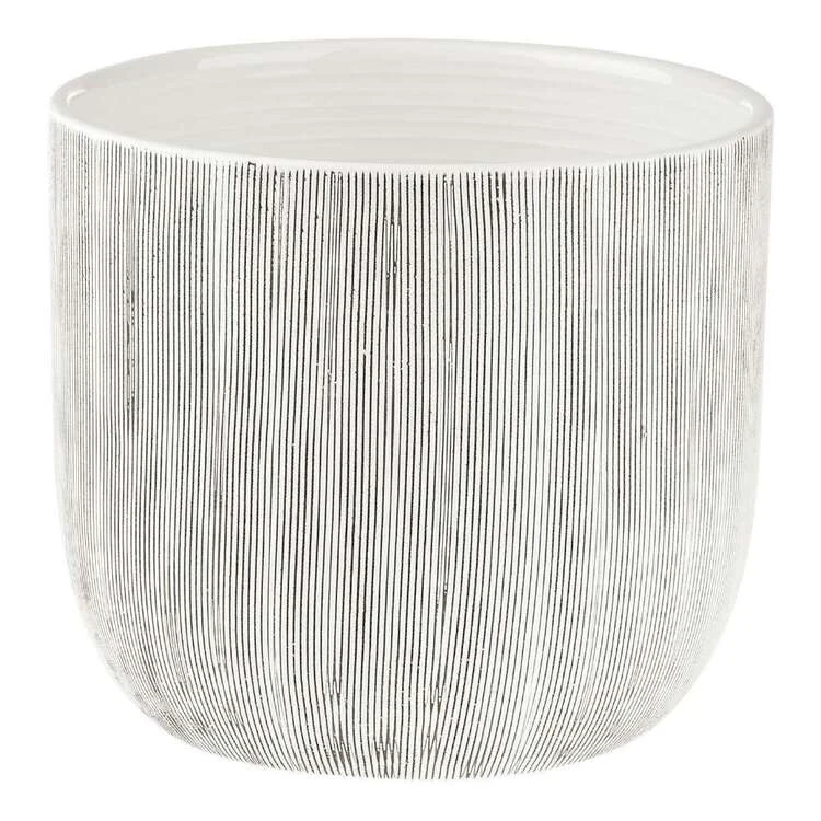 A sculptural shape in a pottery-style design, the Linen House 19cm Planter Pot Taupin White exudes a contemporary feel. Complete with a beautifully textured ribbed pattern throughout, this chalk-hued planter pot is the perfect highlight for a special plant or for use as a stand-alone and intriguing décor accent.