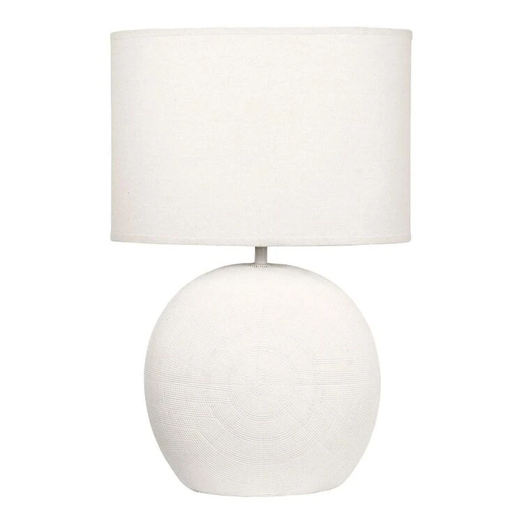 Make a statement to your home interior with the Midras Link Fossil Table Lamp. This stunning Fossil Table lamp has a white ceramic textured intrinsically detailed base in a fossil design with a cotton fabric shade that will absolutely bring an extra element of chic to any space in your home. Perfect for desks, bedrooms, tables, and benches, shop the Fossil Table Lamp today at Harris Scarfe!