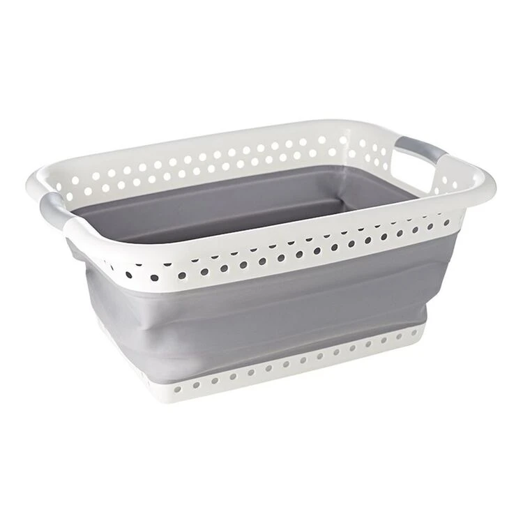 This laundry basket can be folded flat when not in use! Just the thing for a small laundry, or for use when camping or travelling.