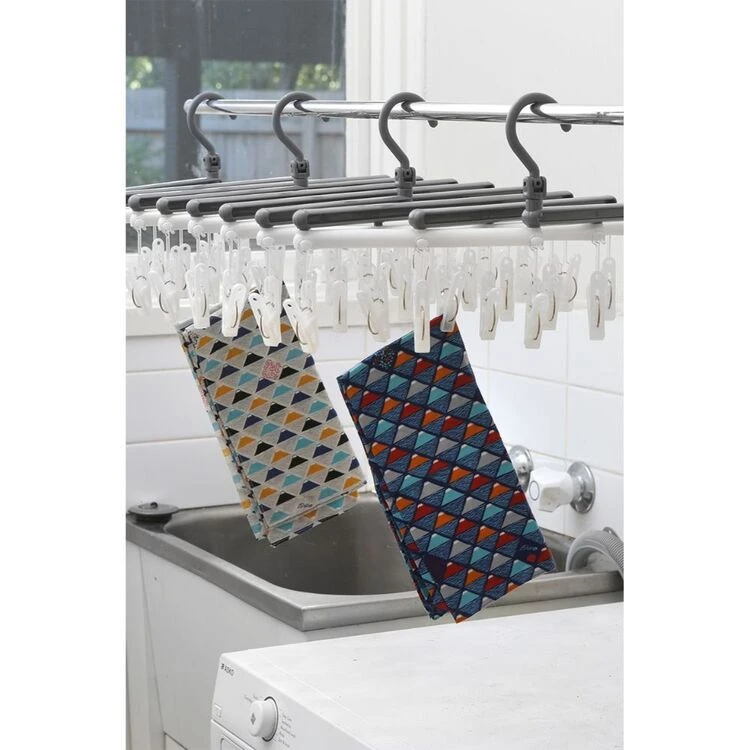 The Collapse-A peg airers are designed to make drying clothes easier all year around. Hang them from an indoor airer to securely hold all those small items that take up too much space and are always falling off. Or use on an outdoor clothesline for extra drying room, or hang under cover to dry clothes during bad weather. They can even be hung from a shower rail in the bathroom.
